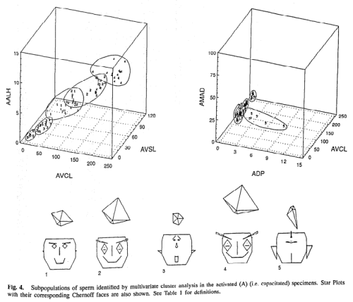 A quick search turns up lots of code for generating faces from multidimensional data, but nothing as cute as Chernoff’s original work. I’ll remedy that in a near future post. Unless you know of something already out there that I missed.