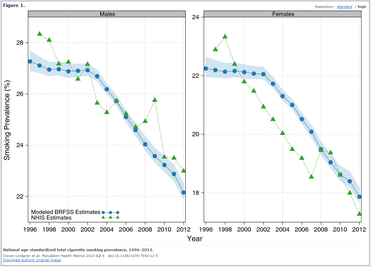 I’m away from work for some really exciting family stuff, but while I wait on that, our paper on trends in smoking prevalence has just come out, along with a fun interactive data visualization of the results, and some media coverage that I think tells the story quite well.