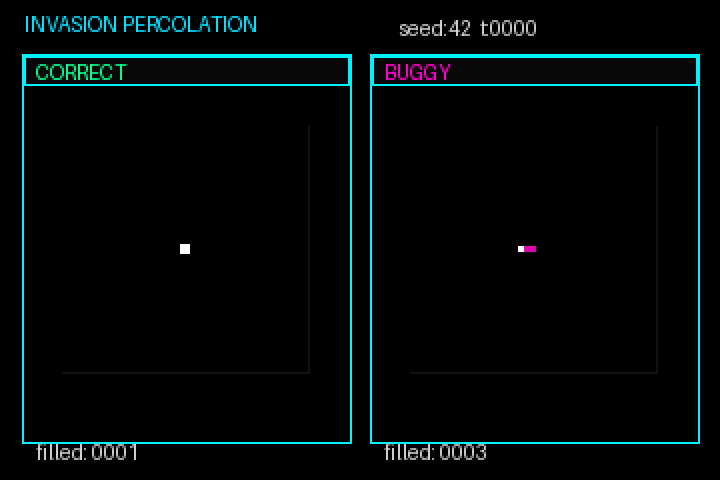 This is perhaps Greg Wilson’s original challenge: find a statistical property of the grid itself that differs between correct and buggy versions.