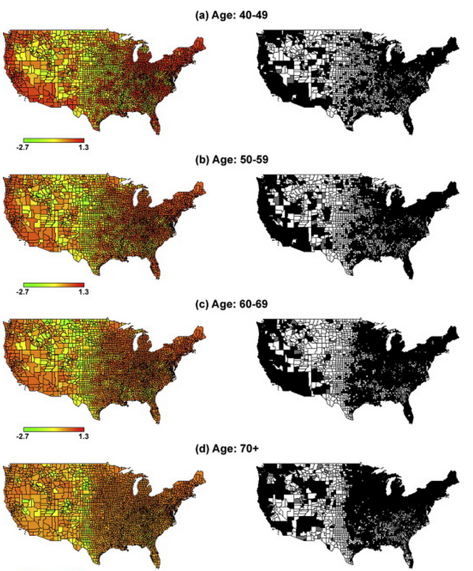 Last week, we read Chien et al, Efficient mapping and geographic disparities in breast cancer mortality at the county-level by race and age in the U.S. I’ve been very interested in these sort of “small-areas” spatial statistical methods recently, so it was good to see what is out there as the state of the art. I think I’ve got something to contribute along these lines some day soon.